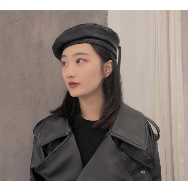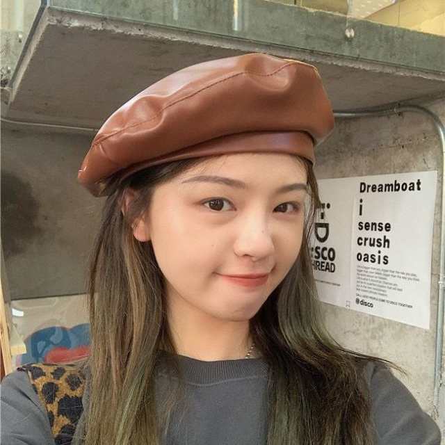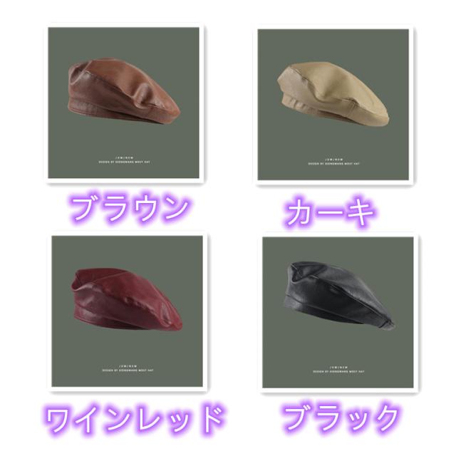 帽子 レディース 秋冬 ベレー帽 ぼうし ハット レディース帽子 革帽 調整可能 ブラック ブラウン ウィンレッド ベージュ 革 フェイクレザー 秋 冬 春 送料無料