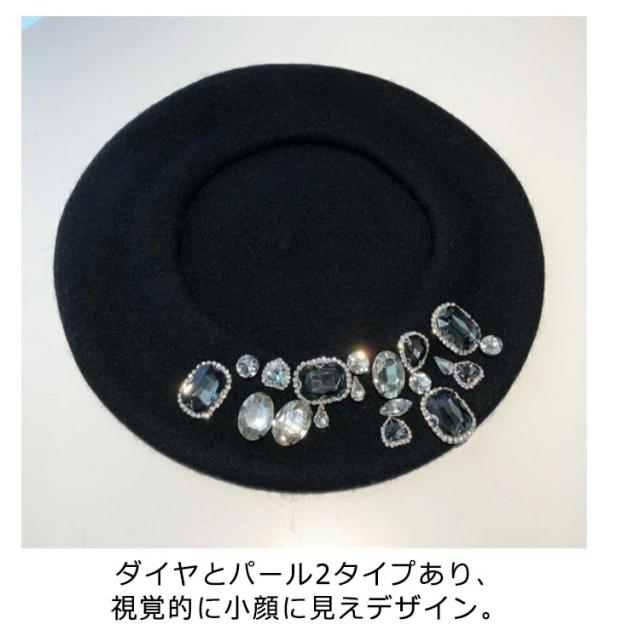 | ジュエリー付き、華やかなベレー帽。 ダイヤとパール2タイプあり、視覚的に小顔に見えデザイン。 トレンドスタイルに、いろんなお洋服と相性が良い。 ディリーファッションにちょっとした変化をつけたい時とかにもいいアイテムです。 | |