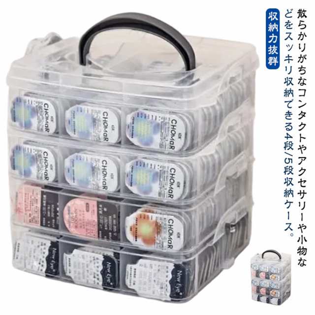 コンタクト収納ケース 4段/5段 蓋付き 仕切り ワンデー 使い捨て コンタクト カラコン 収納ケース 透明 クリア 小物入れ 小物収納 アクセサリー 収納 ケース 収納ボックス 大容量 コンタクトケース 使い捨てコンタクトレンズ収納 持ち運び 持ち手付き 収納グッズ