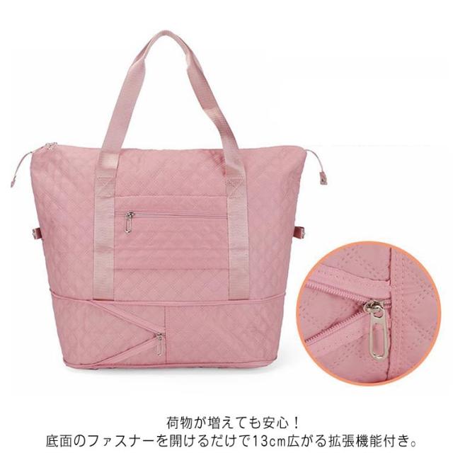 | デザイン性、機能性でお出かけが楽しくなる!かわいいキルティングボストンバッグ。 実用的な内部構造で気軽に旅行へ持っていける!ジム通いや1泊2日、2泊3日の旅行に最適な収納力。 濡れたタオル、汗のついた衣類、洗面用具を入れることができ、お手入れが簡単で清潔に保てます 耐摩耗性、耐傷性、防水性等の性能があり、シワが付きづらく、変形しにくい 荷物が増えても安心!底面のファスナーを開けるだけで13cm広がる拡張機能付き。 畳んでコンパクトに変身!使用しない時は、コンパクトに収納できるので場所も取らず持ち運びに便利 キャリーオンOK!スーツケースにセット出来る構造でらくらく移動、機内への持ち込みも可能です。 | |