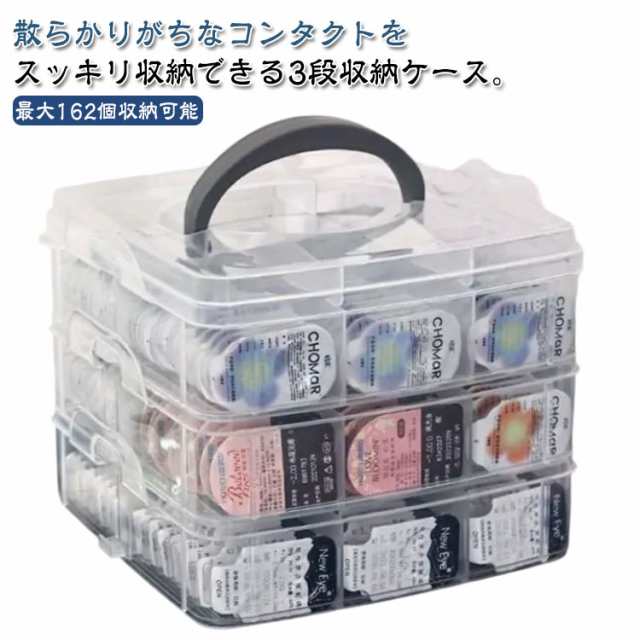 | 散らかりがちなコンタクトをスッキリ収納できる3段収納ケース。【最大162個収納可能】 収納力抜群な上にで、クリアタイプなのでストックの数も一目でわかるのでとても便利です。 蓋付でホコリや汚れもガード! 3段式で最大162個収納可能。 キッチン、バスルーム、デスク周りなど、さまざまな場所で活躍する多機能なケースでコンタクトはもちろん、メイク道具などの小物の整理にも役立ちます。 シンプルでありながら、どこに置いてもおしゃれな雰囲気を演出できるため、韓国雑貨や北欧風のインテリアにぴったりです。 また、スッキリとしたデザインで、どんな場所にも馴染みやすく、デスクや洗面などの限られたスペースを効率的に活用することができます。 | |