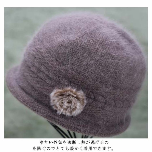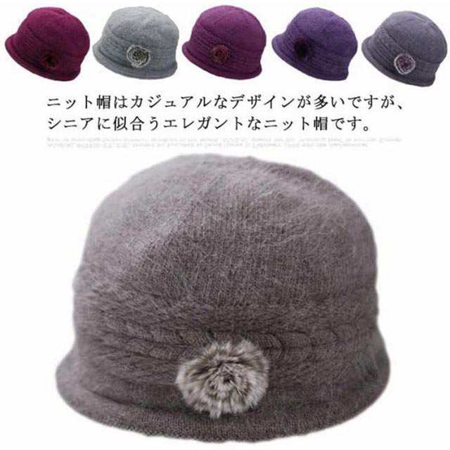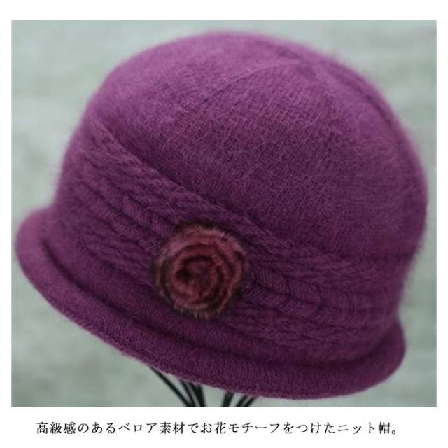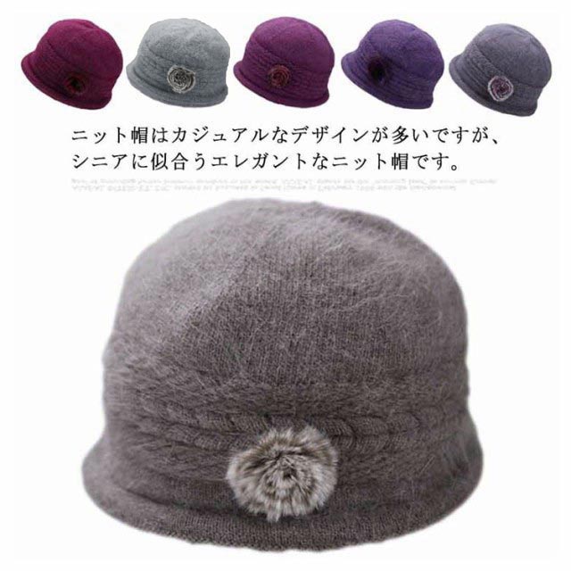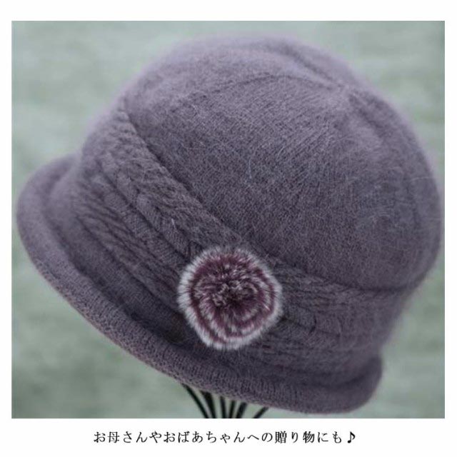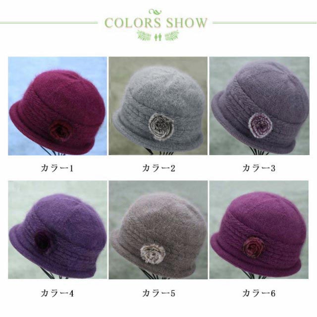 全6色・送料無料! 帽子 ニット帽 レディース 秋冬 花 おばあちゃん ウール 70代 80代 60代 50代 ニットキャップ ハット フラワー うさぎの毛 婦人 毛糸帽子 上品 お年寄り 高齢者 誕生日 プレゼント 祖母 暖かい 防寒 あったか ギフト 実用的