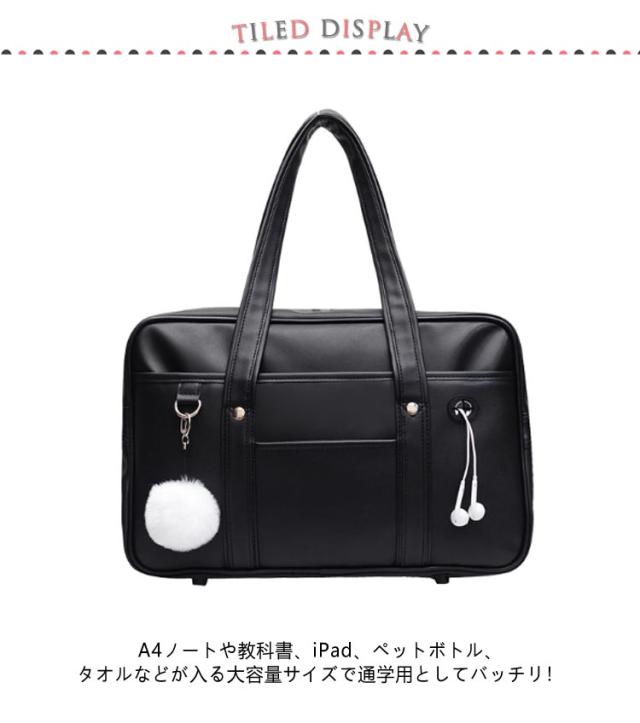 | 大人気のアイテム!ボストンバッグタイプのスクールバッグです。 A4ノートや教科書、iPad、ペットボトル、タオルなどが入る大容量サイズで通学用としてバッチリ! 表面には高品質の合皮を採用し撥水性があるので、多少の雨なら大丈夫。 バッグの高さは約26cmもあるのでA4サイズのノートなどを入れることができます。 適当のハンドルの長さで、人間工学的設計で、手持ちも片肩掛けもできます。 通学時や放課後の制服コーデはもちろん、サブバッグとして修学旅行などにもおすすめ◎ | |