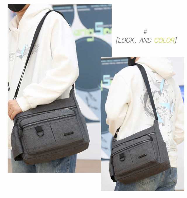 ショルダーバッグ メンズ 斜めがけ 肩掛けバッグ 収納バッグ 撥水 軽量 大容量 ファスナー付き たっぷり 大人 防水 カジュアル ファッション 通勤 通学 デート
