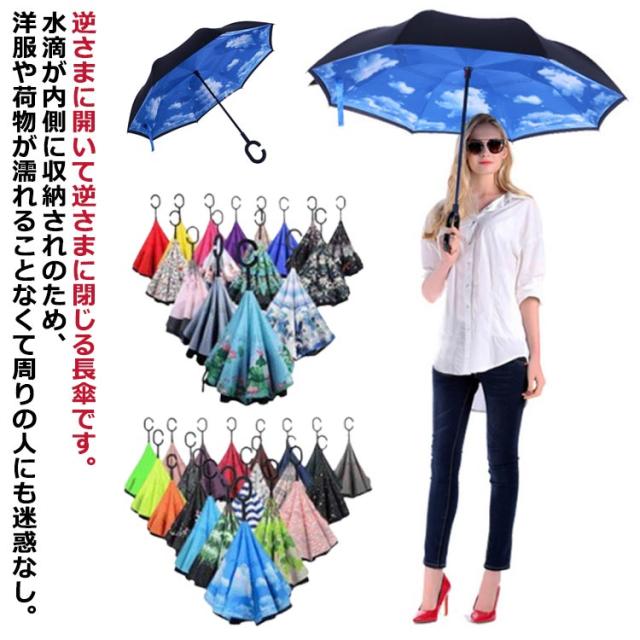 逆折り式傘 逆さ傘 長傘 雨傘 レディース メンズ 男女兼用 晴雨兼用 傘 かさ カサ さかさ傘 二重傘 濡れない 遮光 UVカット 紫外線カット 日傘 丈夫 梅雨対策 柄物 無地 雨具 撥水 手動 C型持ち手 ハンズフリー 軽量 プレゼント 通学 通勤 ビジネス傘 ギフト