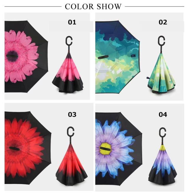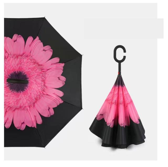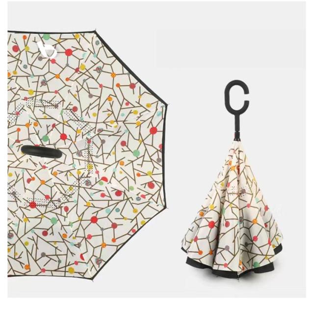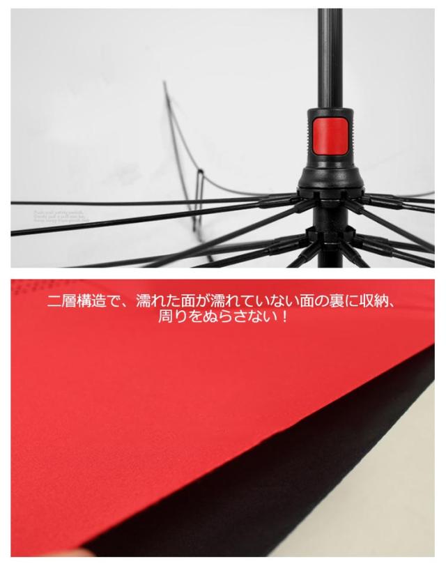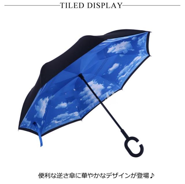 | 逆さまに開いて逆さまに閉じる長傘です。水滴が内側に収納されのため、洋服や荷物が濡れることなくて周りの人にも迷惑なし。 便利な逆さ傘に華やかなデザインが登場♪ 逆転の発想から生まれた逆さ傘が便利な上に可愛く、カッコよく! 二層構造で、濡れた面が濡れていない面の裏に収納、周りをぬらさない! 持ち手はC型持ち手で手首に引っ掛けることで、傘を支えることが可能に。 | |