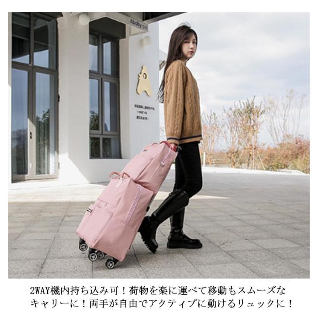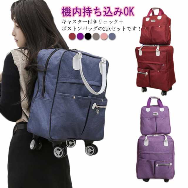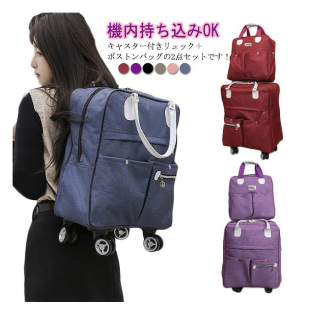 | 機内持ち込みOK!キャスター付きリュック+ボストンバッグの2点セットです! 【機内持ち込みOK!】リュック⇔キャリーバッグの2way仕様! キャリーバッグはリュック単品としてもお使いいただけます。 ボストンバッグもリュック単品としてもお使いいただけます。 カラフルな全6色展開で普段使いからビジネスまで 4輪のキャスター搭載してスムーズで軽やかな走行を可能にし、軽量な機内持ち込みサイズで短期旅行や帰省、出張、ショッピングなどに最適! 2WAY機内持ち込み可!荷物を楽に運べて移動もスムーズなキャリーに!両手が自由でアクティプに動けるリュックに! 収納便利&省スペース!使わないときはキャリー台に折りたたみ可能。 | |
