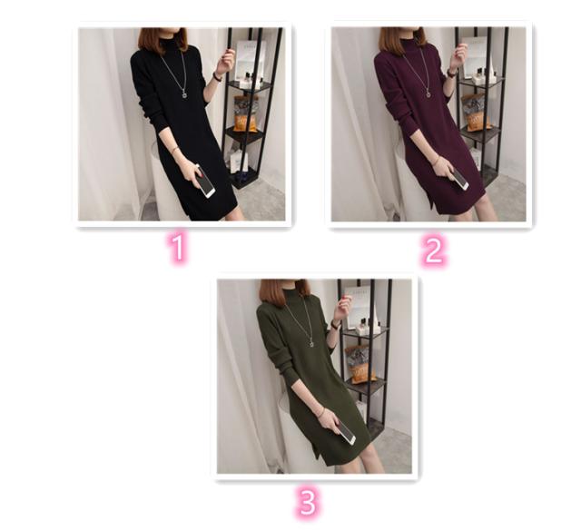 レディース ワンピース ニットワンピース ニット ワンピ ハーフハイネック 膝丈ワンピース リブワンピース 秋冬 リブニット 長袖 カジュアル スリット入り 膝丈 おしゃれ