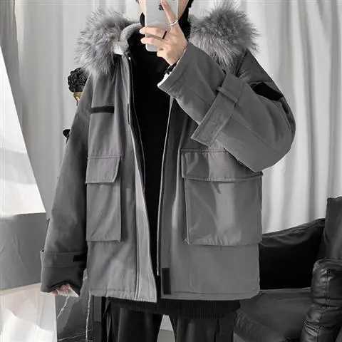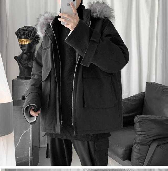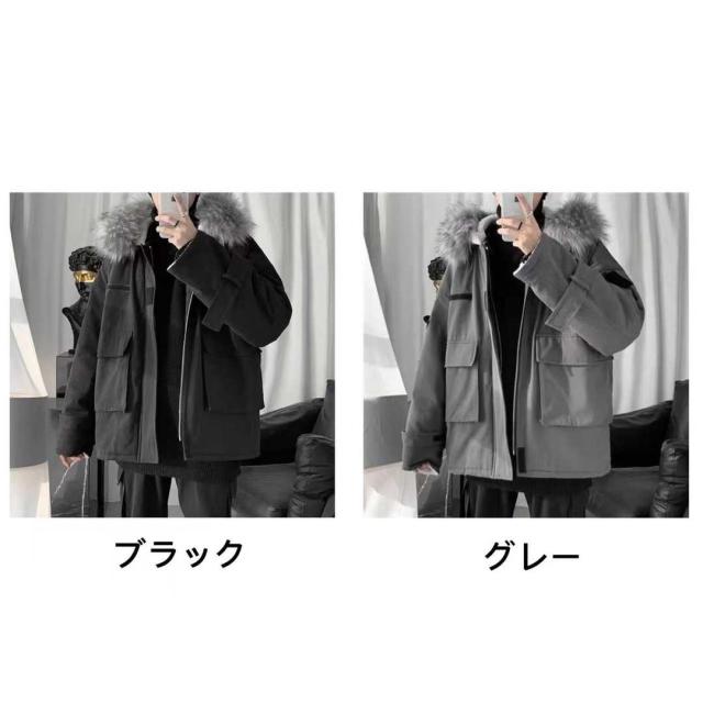 メンズ アウター 綿服 秋冬 ジャケット コート トップス ショート丈 フード付き 厚手 男性 防風 防寒 お洒落 ファッション 韓国風 ゆったり カジュアル ブラック グレー