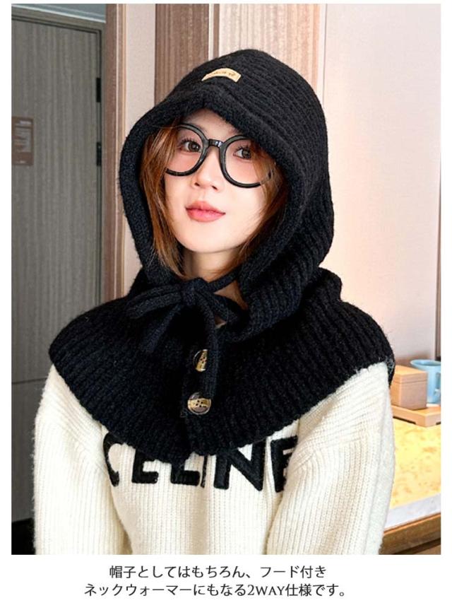 蓄熱材 バラクラバ レディース 目出し バラクラバ ニット 帽子 かわいい ニット帽 ニットバラクラバ 韓国 おしゃれ フード付き ネックウォーマー フードウォーマー あったか 防寒 自転車 暖かい 防寒対策 秋 冬