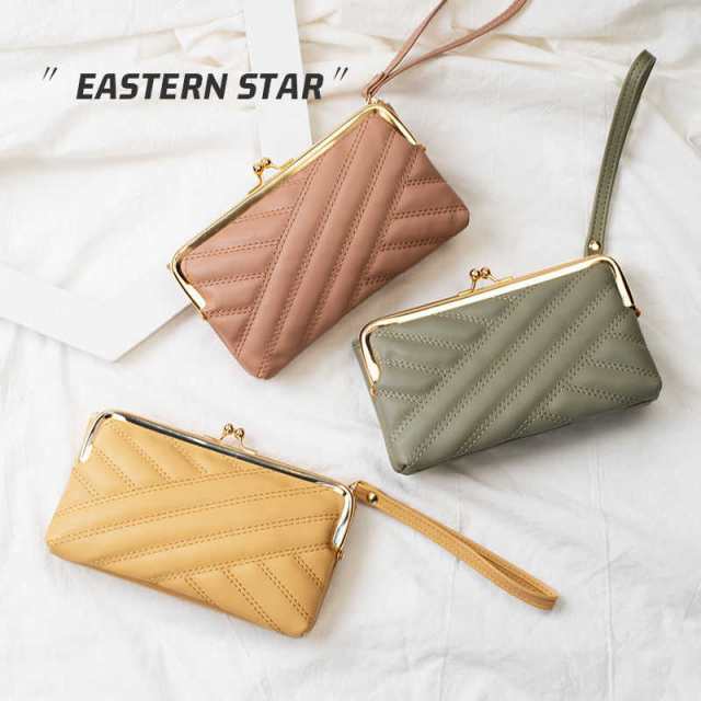 長財布 革 がま口 レディース 財布 ウォレット 革 レザー 人気 大人 きれいめ 可愛い 実用的 スマホポーチ スマホ入れ ブラック グリーン ピンク イエロー ベージュ ギフト プレゼント ストラップ付き
