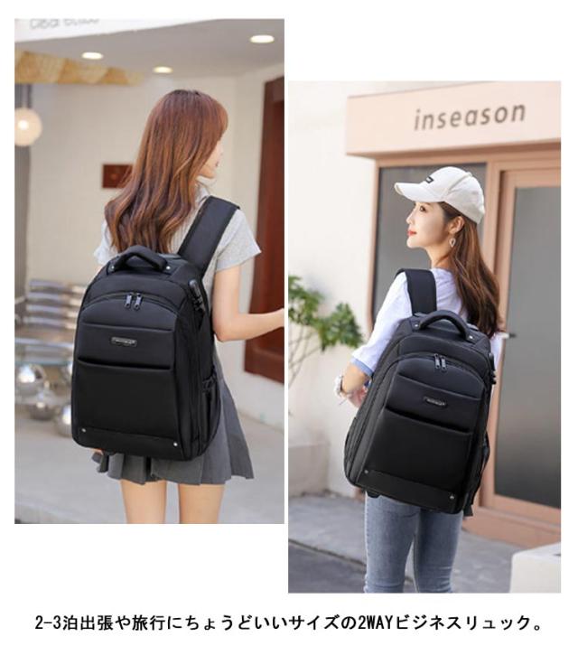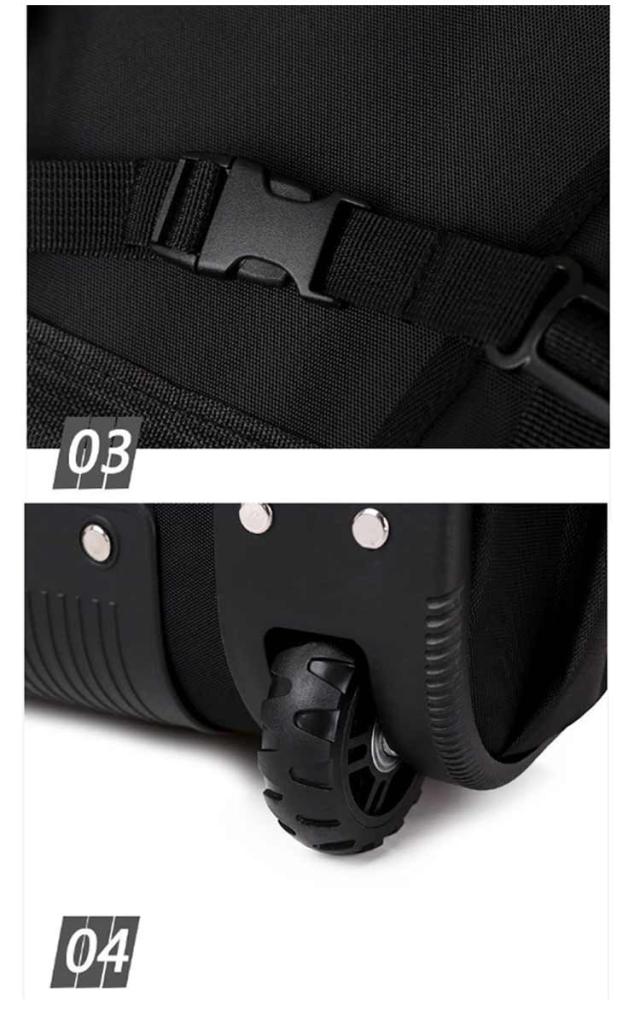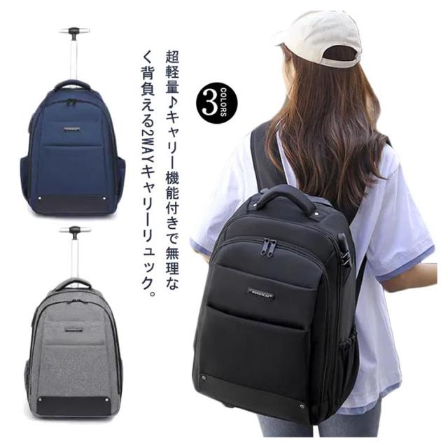 | 超軽量♪キャリー機能付きで無理なく背負える2WAYキャリーリュック。 キャリーバッグとしてもリュックとしても使える2WAYキャリーバッグ。 2つのモードを使いこなし。荷物を楽に運べて移動もスムーズなキャリーに!両手が自由でアクティプに動けるリュックに! 丈夫で厚手、摩耗に強いオックスフォード生地に水弾き撥水加工で、旅先での急な雨でも安心◎ 底が汚れないように底足付きで、地面に擦りづらくして、底面を綺麗に保ちます。 直径約7cmの大きめ静音タイヤ、小さな力でも軽快に走行でき、疲れにくい。 ワンプッシュでキャリバーを伸ばし、2段階調整可能。 2-3泊出張や旅行にちょうどいいサイズの2WAYビジネスリュック。 リュックとして使われた時、背面のカバーを開くとベルト引き出て利用できます。カバーはマジックテープで底面に固定でき、タイヤもカバーしてくれるから、背中を汚れることはありません。 キャリーバッグとして使われる時、ショルダーベルトも簡単に収納できるから、見た目がスッキリおしゃれ。 充実した収納力、ポケットがたくさん設けられており、仕分けて細かく収納可能! 2-3泊の衣類や15.6インチノートPC、タブレット、書類、雑誌、ペットボトル、折りたたみ傘、 カメラなどたっぷり収納できます。 よく使う小物類はフロントポケットにいれておくととても便利です。 移動の際にチェストベルトを留めることにより重さが軽減され、荷物の重さによる揺れが安定します。更に、高さの調整が可能で、お好みの高さにしてフィット感を得ることができます。背面部分は通気性メッシュ素材、不快な蒸れを効果的に逃します。 ダイヤル式ロック付き、海外旅行など時、ワンランク上の安全性◎旅行、ビジネス、出張、通勤・通学に最適のリュック⇔キャリーバッグの2wayバッグ。 | |