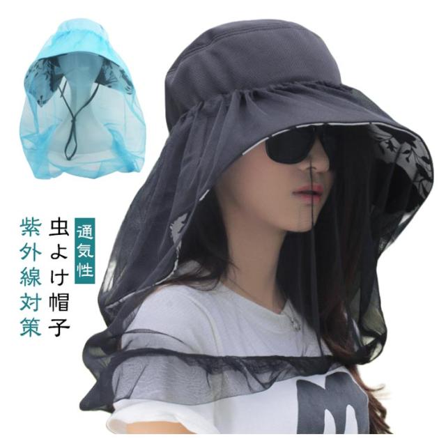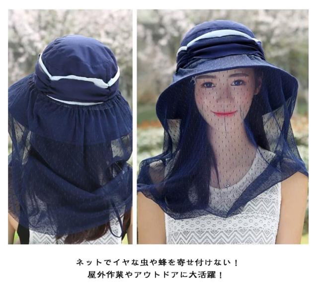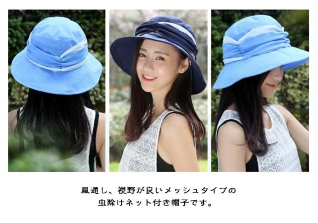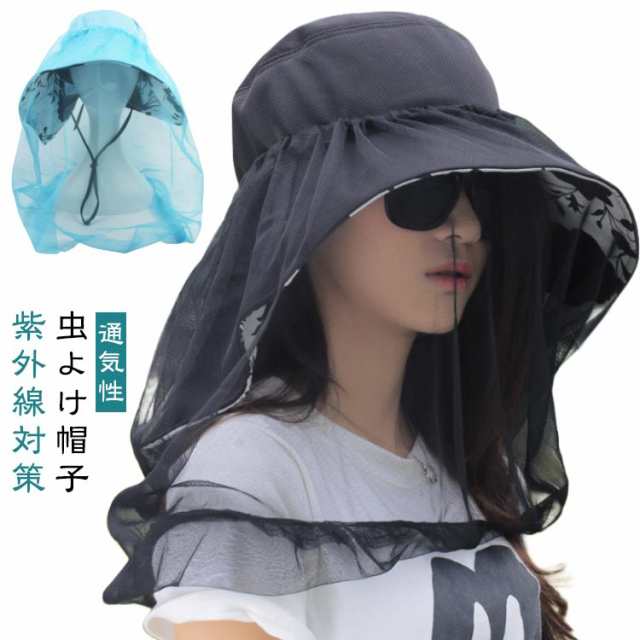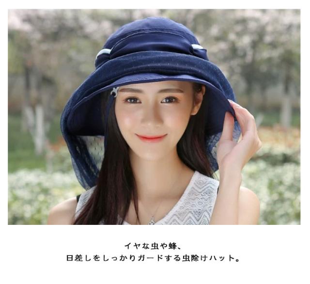 虫よけ 帽子 ネット ハット ツバ広 女優帽 紐付き ハットストラップ付き UVカット レディース 蚊よけ 虫除け ストラップ ぼうし 日焼け防止 紫外線対策 メッシュ 通気性 ガーデニング 農作業 キャンプ アウトドア ブラック 黒 ネイビー ベージュ