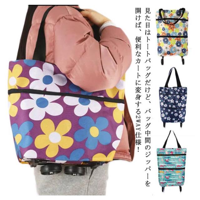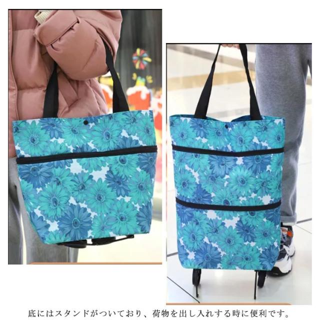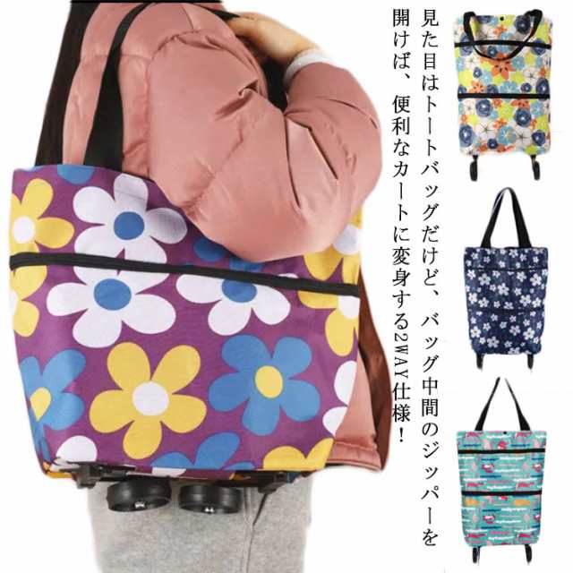 折り畳み ショッピングカート 買い物カート 大きめ トートバッグ 2way かわいい 大容量 軽量 撥水加工 防水 ショッピング キャリーカート レディース 花柄 キャリーバッグ キャリーケース キャスター