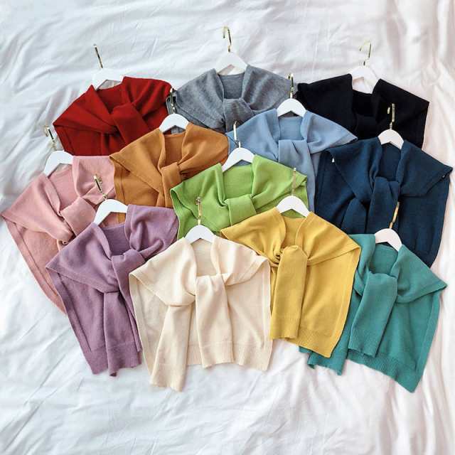 全10色!セーラー風付け襟 レディース ショール ニットショール 付け襟 つけ襟 セーラー襟 セーラーカラー ショール風 フェイク襟 レイヤード アクセント無地 秋冬 可愛い 送料無料