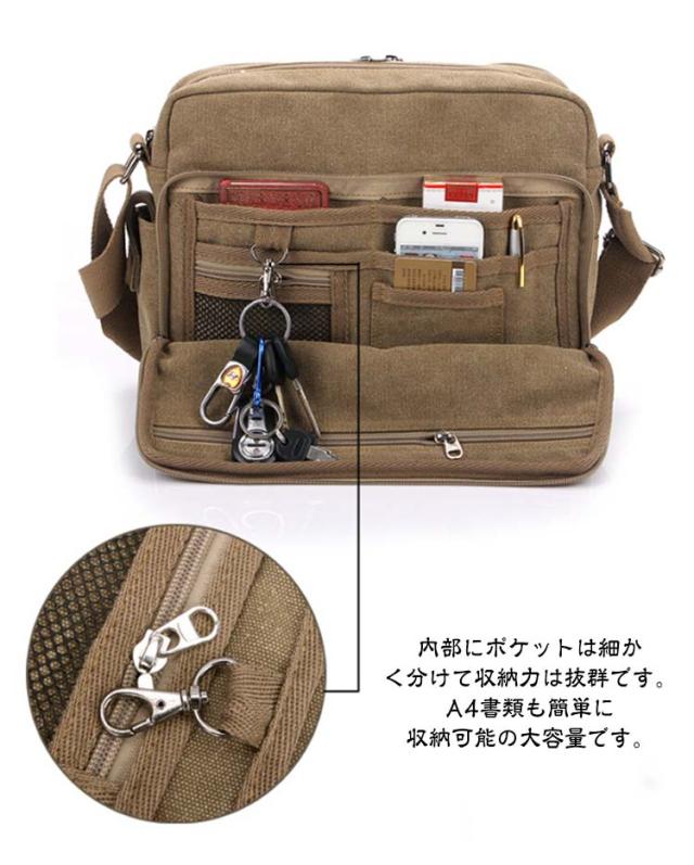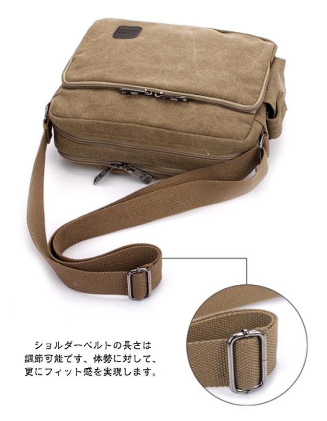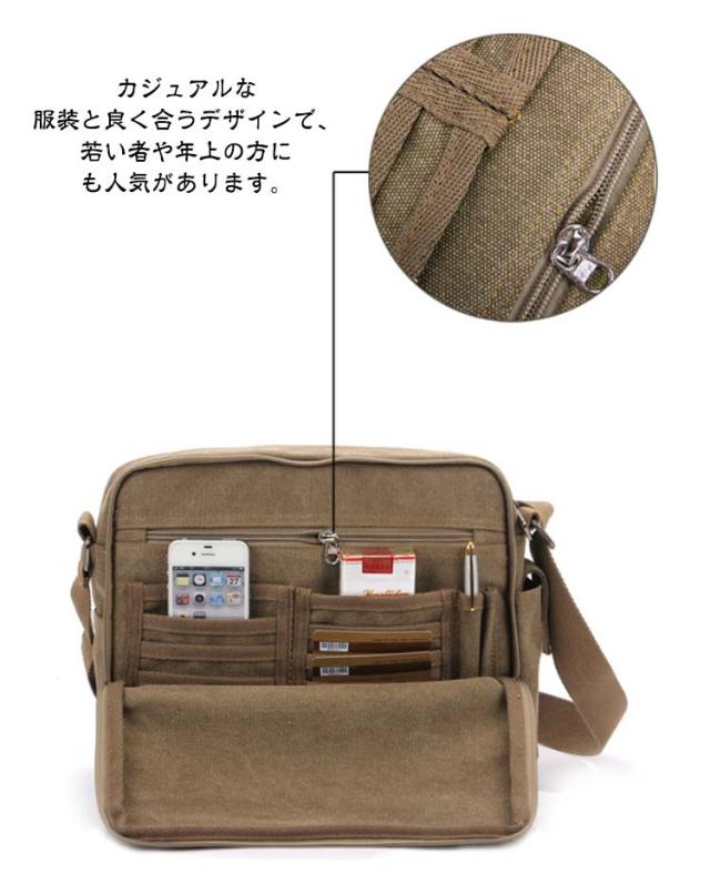 | 収納力抜群のメンズショルダーバッグ 上質のキャンバスで作成して、耐久性が強いです。 カジュアルな服装と良く合うデザインで、若い者や年上の方にも人気があります。 内部にポケットは細かく分けて収納力は抜群です。A4書類も簡単に収納可能の大容量です。 ショルダーベルトの長さは調節可能です、体勢に対して、更にフィット感を実現します。 通学、通勤、外出、旅行にも大活躍です。いろんなシーンで活躍しています。 | |