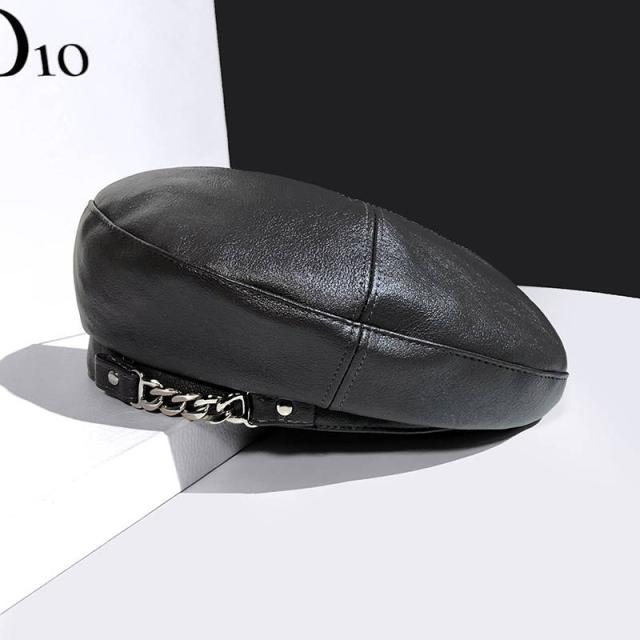 全6色!チェーン付きベレー帽 レディース ベレー ベレー帽 PU 合皮 フェイクレザー 帽子 ハット トレロ 可愛い 秋冬 秋 冬