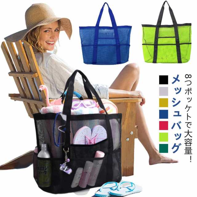 プールバッグ メッシュバッグ トートバッグ 水に強い ビーチバッグ 大容量 ポケット付き トート バッグ お洒落 ショルダー ジムバッグ コンパクト メッシュ かごバッグ レジャーバッグ ビーチ バッグ かばん 大人 可愛い 海水浴 海 軽量