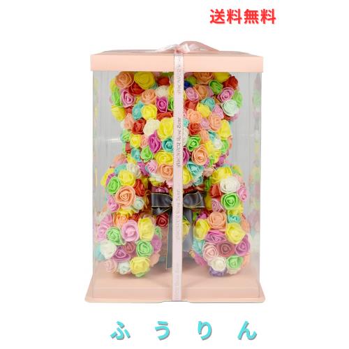 ◆商品名:Enhong ローズベア ローズ熊 バラ 手作り くま 造花 ぬいぐるみ 女性に バレンタイン 誕生日 母の日 ピンク箱付き (カラフル)