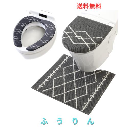 ヨコズナクリエーション トイレタリー (トイレマット&フタカバー&便座カバー 3点セット) (ベニワレン グレー, レギュラー)
