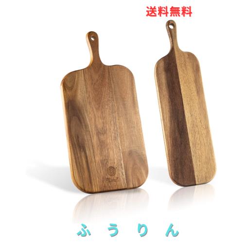 取っ手付き木製カッティングボードセット キッチン用 大小ロング2枚セット アカシア木製カッティングボード 肉 チーズ パン 野菜 果物対