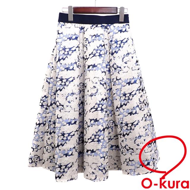 中古 D/Nero オリジナル ジャガード スカート レディース 膝下 ポリエステル シルバー ブルー Sサイズ 4802-140-201 ディーネロ 古着 アパレル