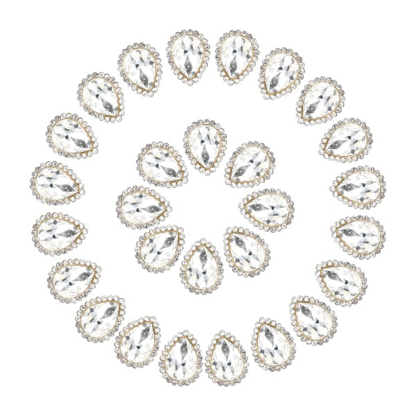PATIKIL 0.5" リネストーン、50個 ティアドロップ 水晶 リネストーン ポイン トバック 宝石 メタル フラットバック クラフト シューズ ドレス 衣類 イヤリング ベルト 裁縫 装飾、ホワイト