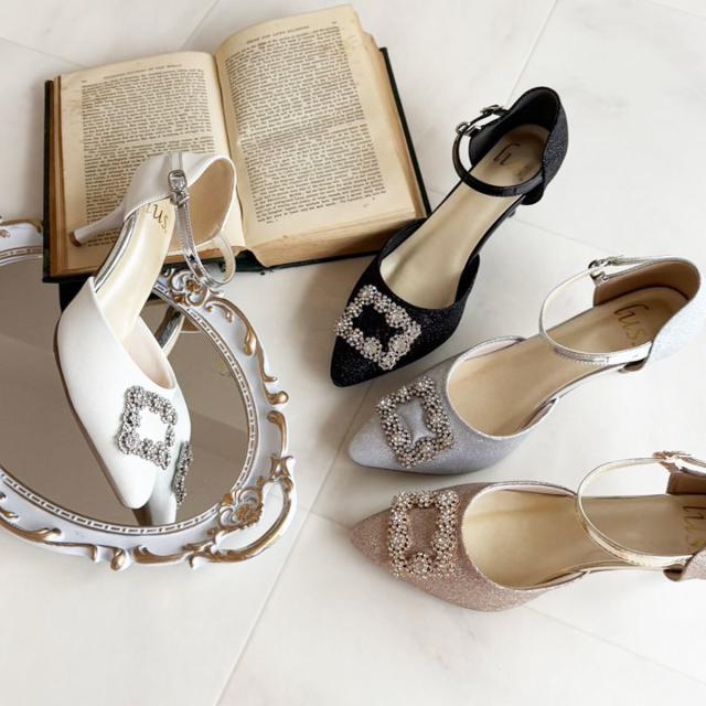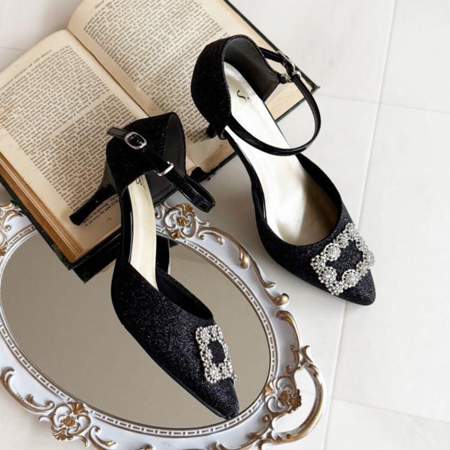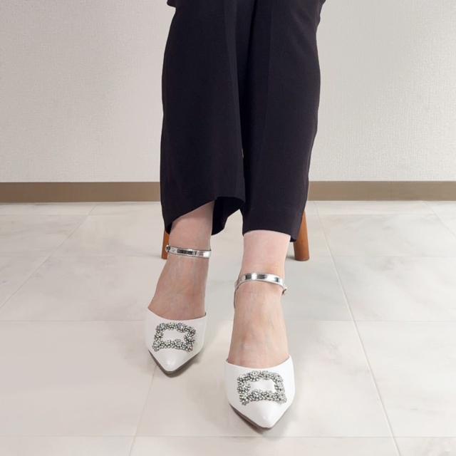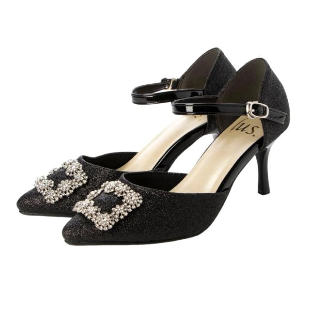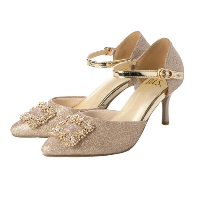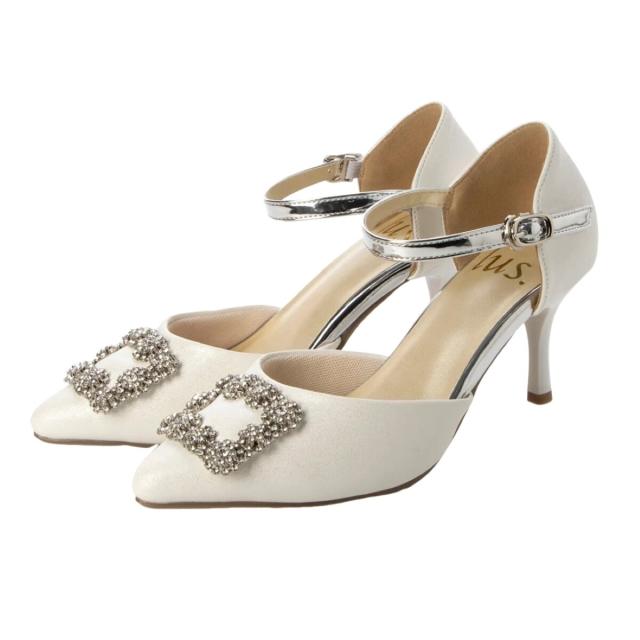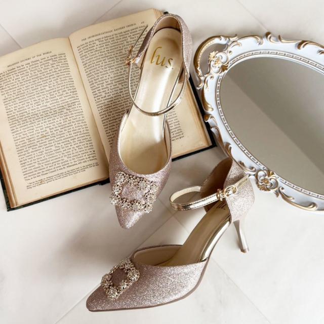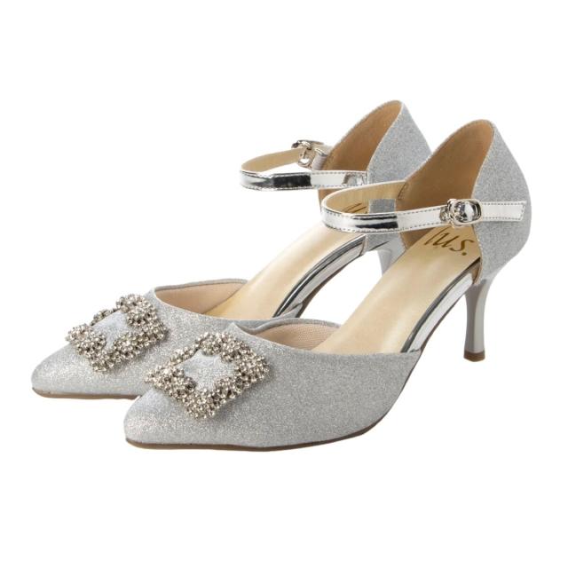 lus.ビジューバックルセパレートパンプス 7.0cmヒール アンクルストラップ付き