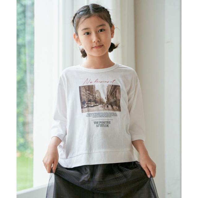 【親子コーデ】フォトロゴプリント7分袖Tシャツ(120?160cm)