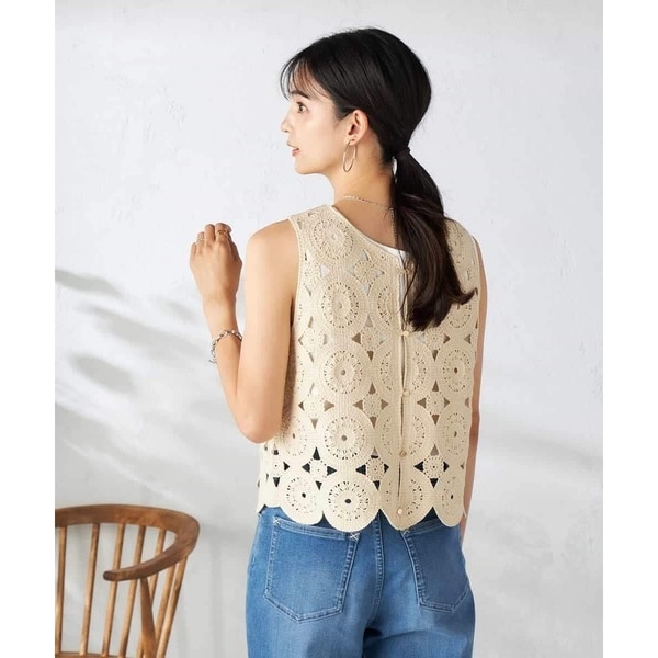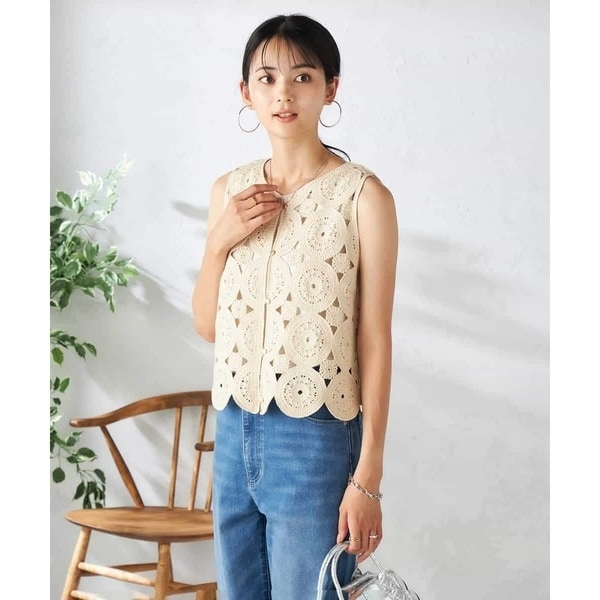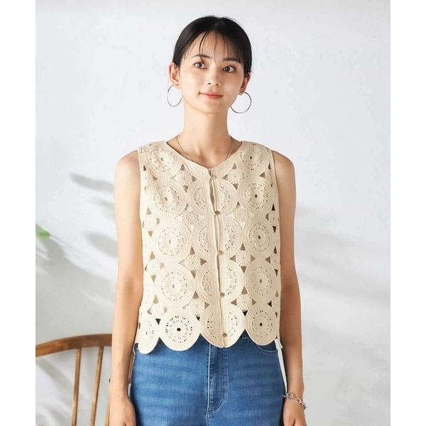 ・優しい風合いでナチュラルな印象のクロシェ編みベスト