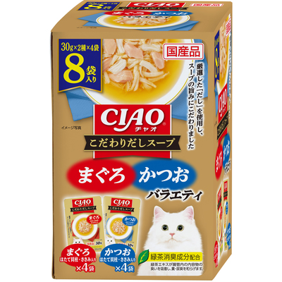 【12個セット】いなばペットフード CIAO こだわり だしスープ まぐろ・ささみバラエティ 30g×8袋