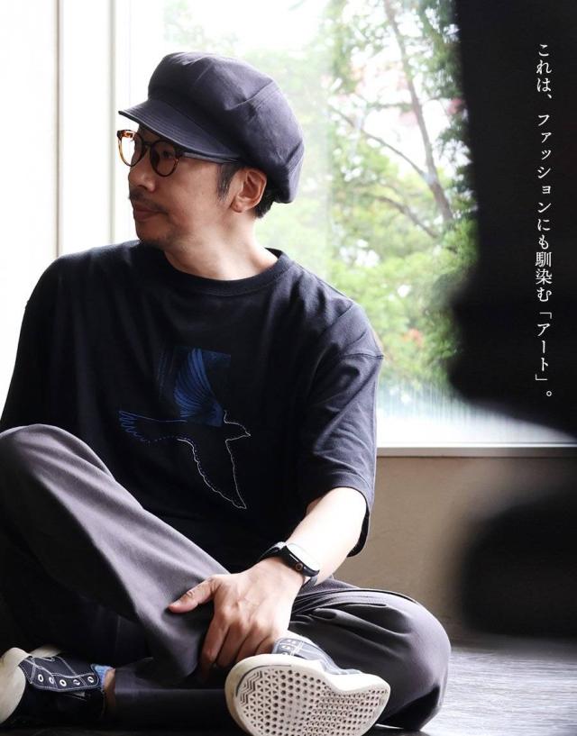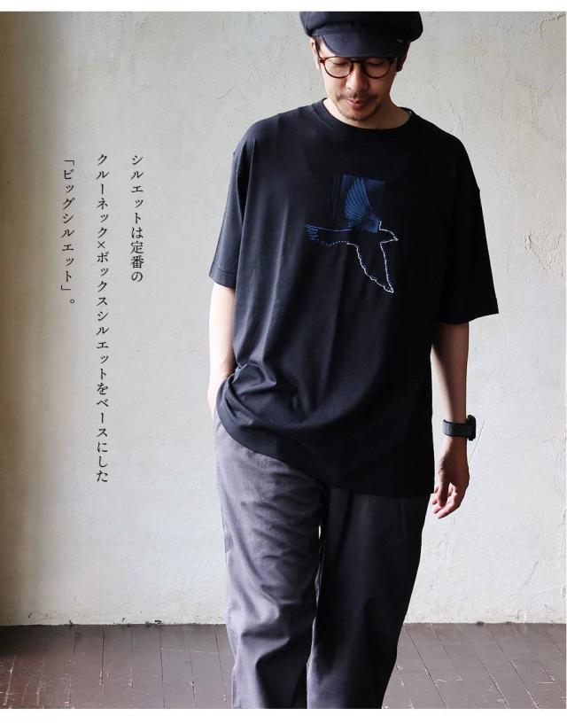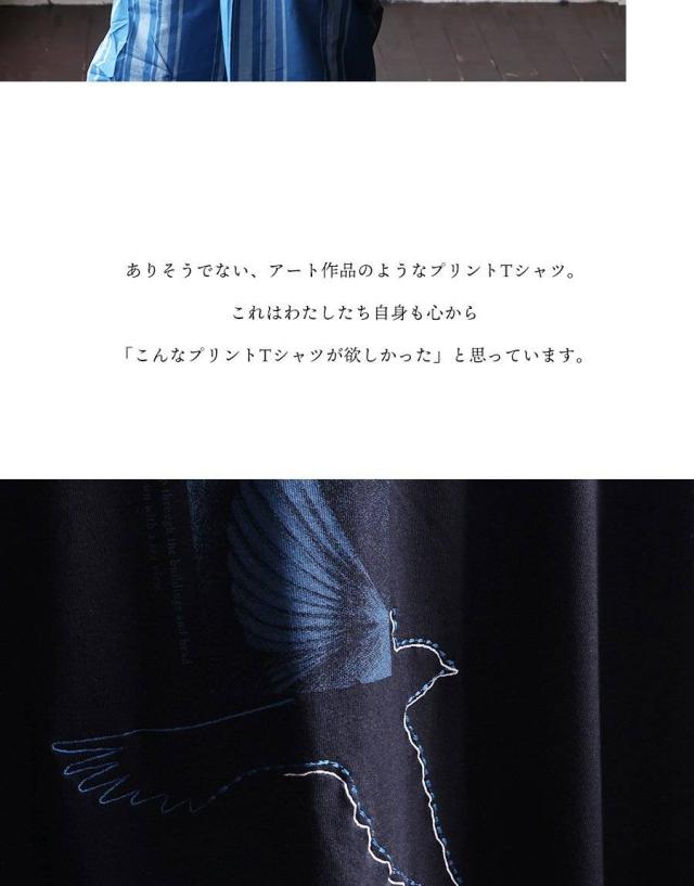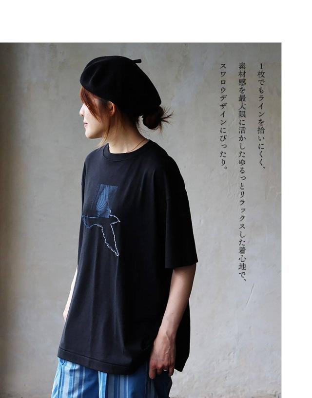 【メール便50】 涼しい Tシャツ 5分袖 半袖 メンズ レディース しっかり 丈夫 コットン 重ね着 透けない 丈夫 スワロウ ツバメ 燕 プリント 刺? ヘヴィーウェイト 5.6オンス 大きいサイズ ユニセックス アートT カジュアル パティ BLUETO ブルート
