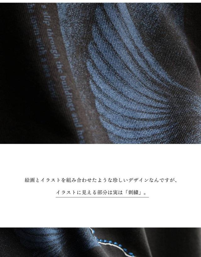 ・絵画とイラストを組み合わせたような珍しいデザインなんですが、イラストに見える部分は実は「刺繍」。