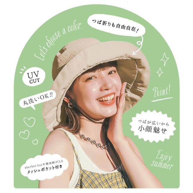 ツバ折りが自由自在で折り畳みができるナイロンブリムハット♪中にSHERBET HATや保冷剤が入るメッシュポケット付きなので日差しが強い日や暑い日にお勧めです♪