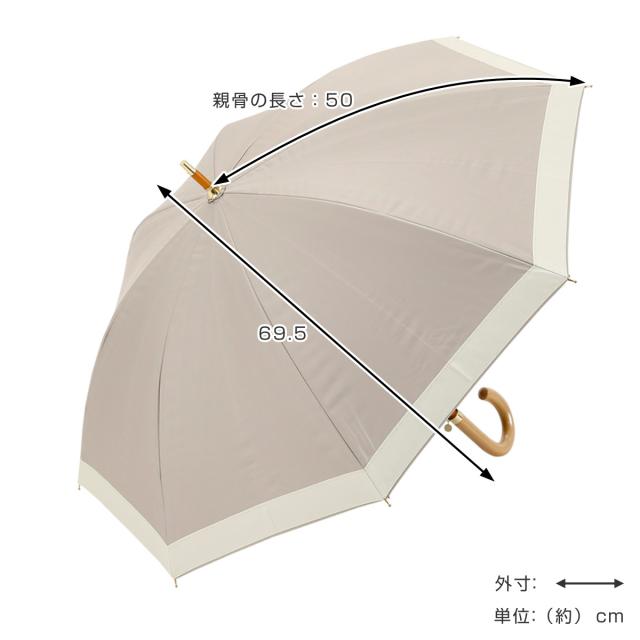 | サイズ | 親骨の長さ:約 50cm 全体の長さ:約 69.5cm 直径:約 86cm 持ち手の長さ:約 13cm 持ち手の太さ:約 1.8cm 石突の長さ:約 6.4cm |