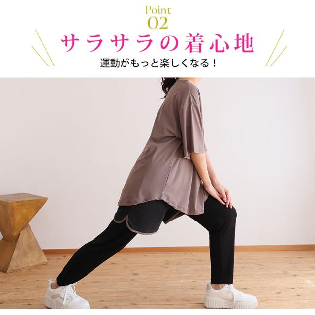 ■着用感:ゆったり、■着丈:お尻すっぽり、■バスト:ゆったり、■腕回り:ゆったり、■袖口:ゆったり、■袖丈:肘上、首回りゆったり、■ウエスト:ちょうどいい、■ヒップ:ややゆったり、■太もも:ゆったり ●サラっとしていてすぐに乾きそうです。