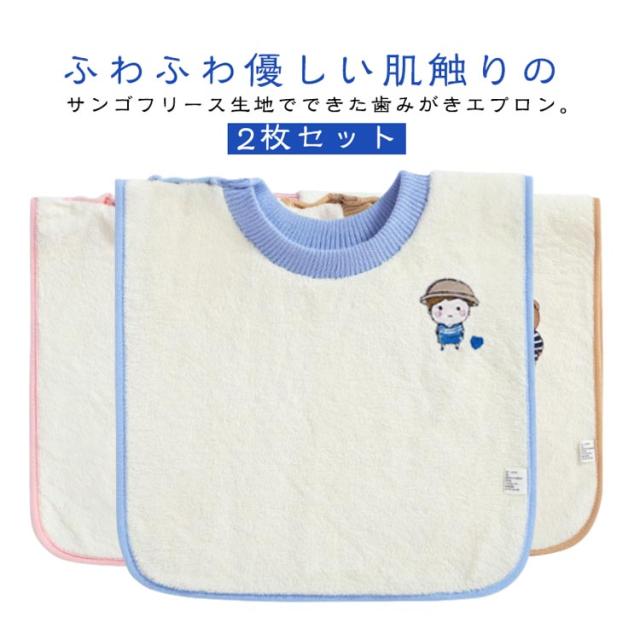 2枚セット キッズ用 子供用 可愛い 前掛け タオル 手拭き タオルエプロン 歯磨きタオル ループタオル 男の子 女の子 かわいい お食事エプロン 保育園 幼稚園 タオル 子供 歯磨き 手洗い 手拭きタオル 園児用 保育園 入園準備 送料無料