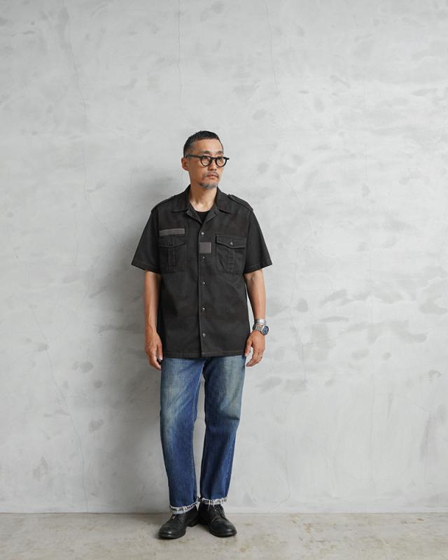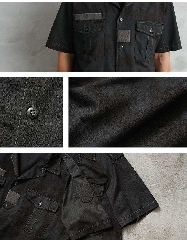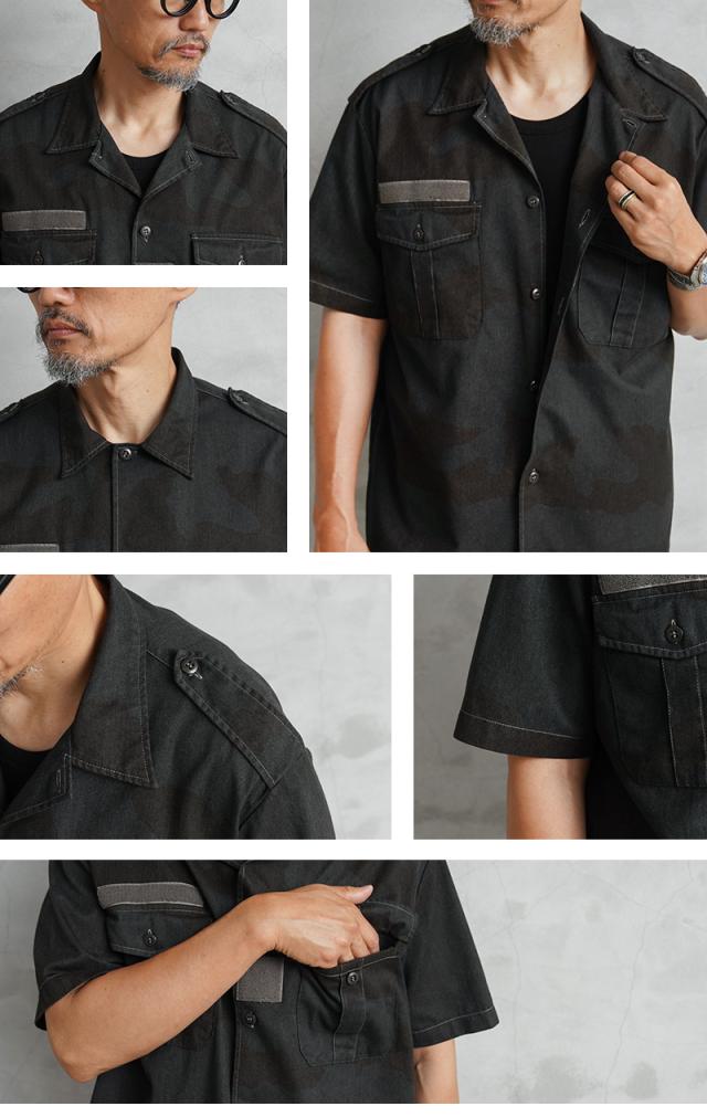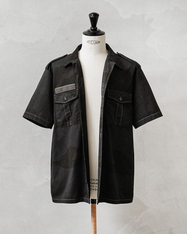 実物 USED フランス軍 チャドシャツ 半袖 デザートカモ BLACK染め【Cx】【I】|メンズファッション ミリタリーシャツ ミリタリーファッション ブラック 古着 放出品 コットン