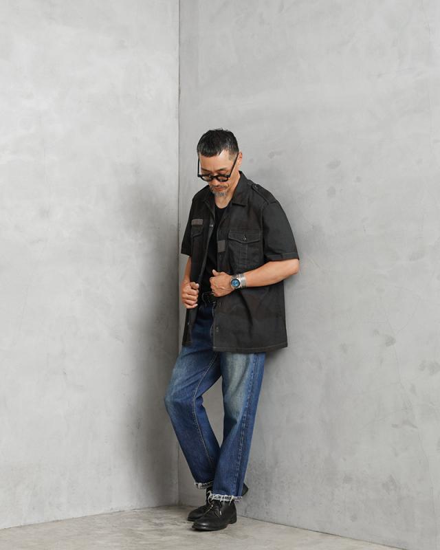 アフリカのチャド共和国に駐留していたフランス軍が使用したことからその名がつけられた実物フランス軍放出アイテム。砂漠地帯の過酷な環境に耐えられるよう、通気性の良いコットン素材を使用しています。元々デザートカモ柄だったものを、染め職人により丁寧にBLACK染め。迷彩柄を染めにする事で、ブラックの中にうっすらと柄が浮き出ており、他にはない雰囲気抜群の一着になっています。両胸には物の落下を防いでくれる使い勝手の良いフラップポケットを配置。シンプルなデザインながら胸元と中央のベルクロパネル、両肩のエポレットなどのミリタリー要素を感じさせるディティールがポイントです。