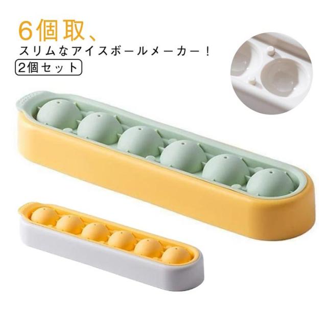 2個セット 丸氷 丸い氷 製氷器 製氷皿 シリコン 6個取 透明な氷 製氷機 丸型 家庭用 蓋付き スリム コンパクト アイスボールメーカー 大粒 押すだけ 取り出しやすい 柔らかい 冷凍保存 耐久 夏用 アイストレー 製氷トレー 冷凍