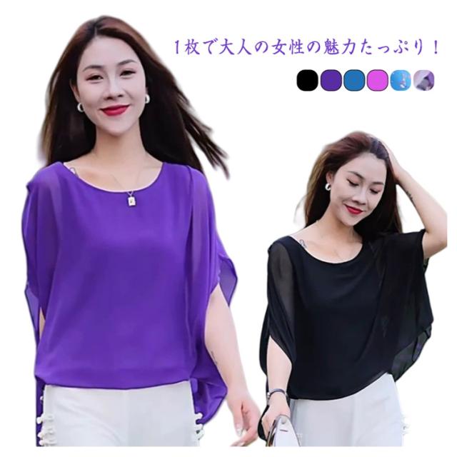 | 1枚で大人の女性の魅力たっぷり! 何にでも合わせやすいシンプルデザインのシフォンブラウス。 ちょっと広めのUネックが、美デコルテ効果+小顔効果抜群 袖がフレンチスリーブデザインで、涼しげに着こなせます。 さらっとした肌触りで、サラリと着心地抜群 インナー付きですので、透け感はありません。 | |