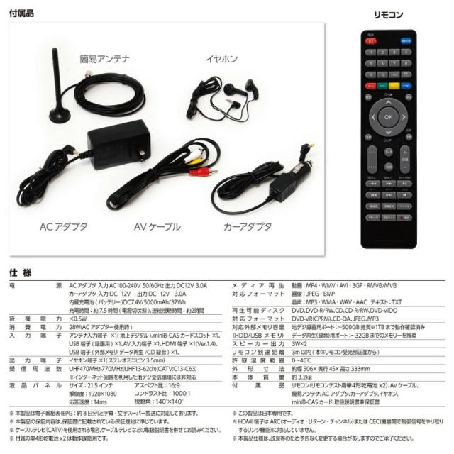 22V型フルハイビジョン録画機能付き DVD搭載ポータブルテレビ OT-TVD22TE OVERTIME 22型 フルハイビジョン 録画機能付き 3電源対応 DVDプレーヤー搭載 DVD再生 CD再生 ポータブルテレビ 壁掛け 自立 2WAY テレビ ![]() ![]() ![]() ![]() ![]() ![]() ![]() ![]() ![]() ![]() | ||||