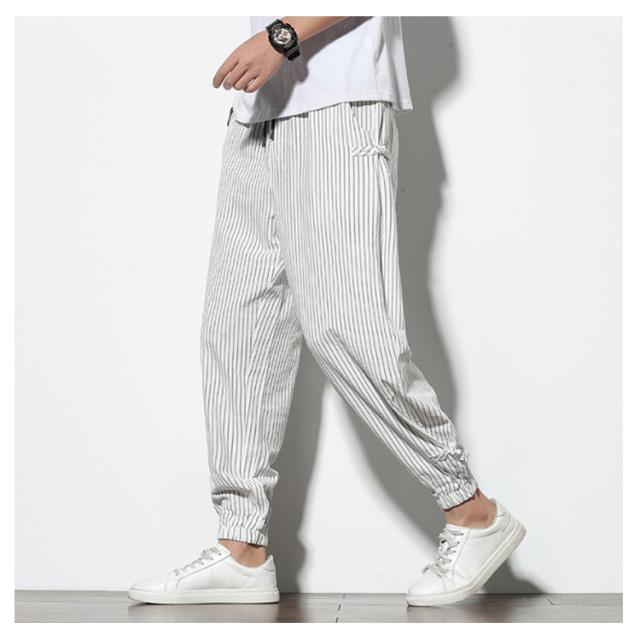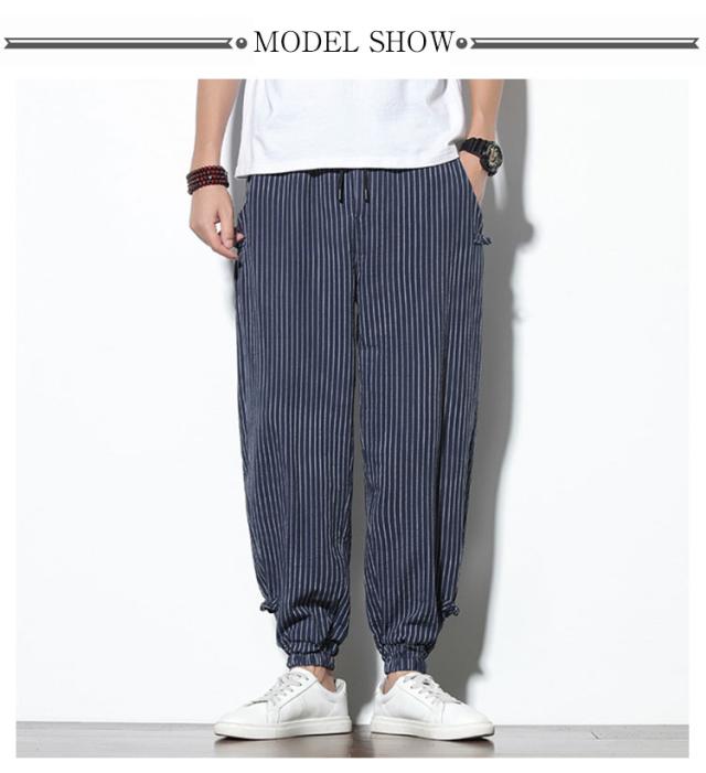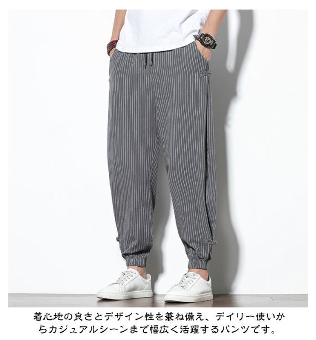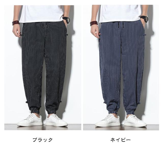 綿麻 パンツ ストライプ柄 ジョガーパンツ メンズ テーパードパンツ 春 夏 秋 薄手 清涼感 涼しい リネン パンツ ワイド アンクルパンツ スラックス イージーパンツ 総柄 ゆったり カジュアル 長ズボン ポケット付き 大きいサイズ ストライプパンツ リネンパンツ 【送無】