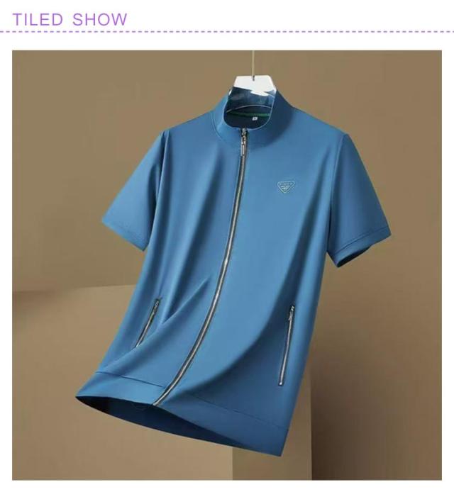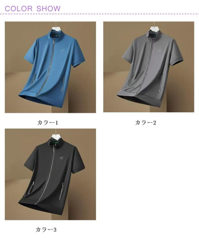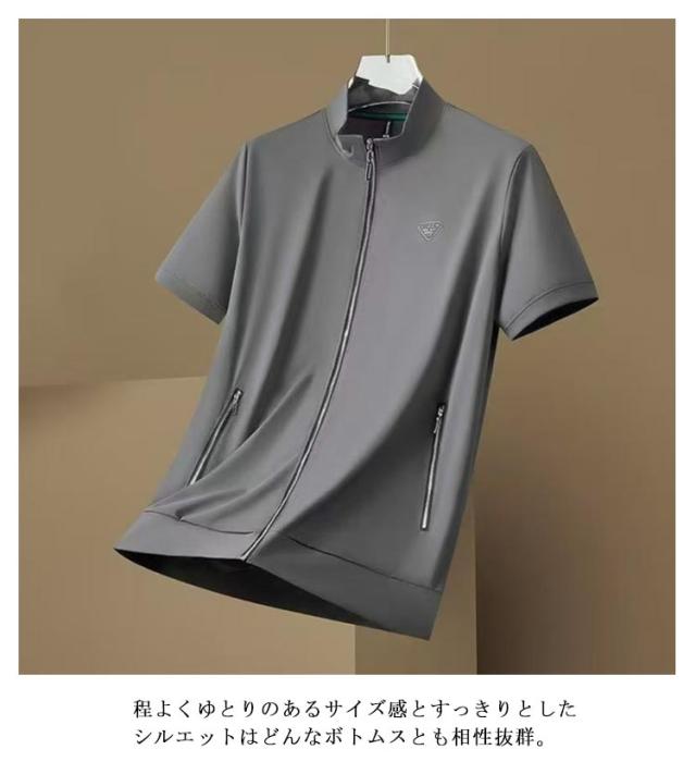 送料無料 パーカー メンズ 半袖 冷感 ジップアップ ブルゾン 半袖パーカー 半袖ジャケット 半袖パーカー 夏アウター 薄手 スタンドカラー 立ち襟 ポケット付き 涼しい ひんやり 吸汗速乾 大きいサイズ ゴルフ アウトドア