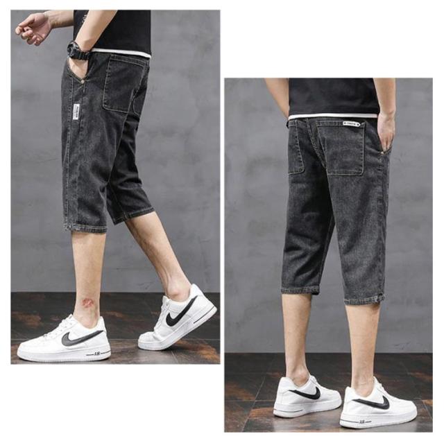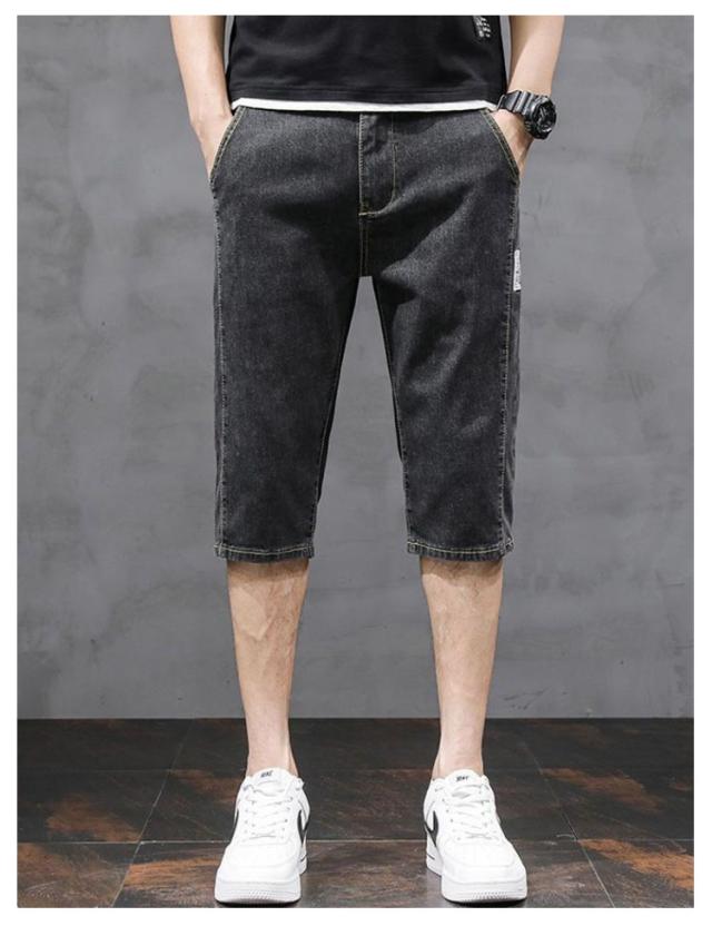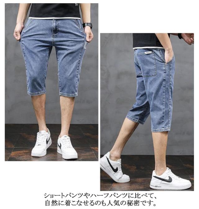 デニム ハーフパンツ 膝下丈 メンズ ショートパンツ 7分丈 クロップドパンツ スリム 細身 デニムパンツ 短パン ストレッチ 薄手 夏 春 カジュアル 大人 学生 ブラック 黒 ブルー グレー 大きいサイズ M L XL 2XL 3XL 送料無料