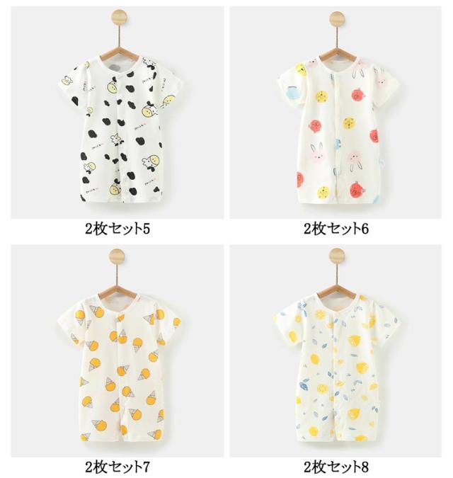 新生児 夏 柔らかい 綿 子供服 ロンパース 女の子 カバーオール 2枚セット ベビー服 コットン キッズ 薄手 出産祝い 100cm 半袖 赤ちゃん 可愛い 66cm 73cm 80cm 90cm おしゃれ ルームウェア 前開き 部屋着 パジャマ プレゼント お出かけ 幼児 男の子