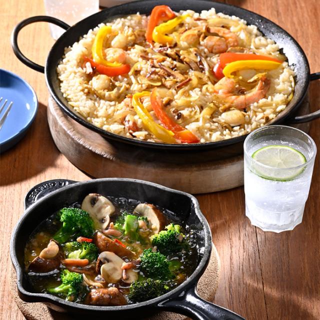 函館の老舗が誇る木樽熟成のイカの塩辛を、調味料として用いたアイデア商品。アヒージョはイカの旨みと塩気が味に深みを与え、パエリアは米と相性のよい塩分高めの塩辛で魚介の旨みを引き出す仕様に。好みの具材を用意すれば、それぞれ1本で味付けが決まる優秀さだ。