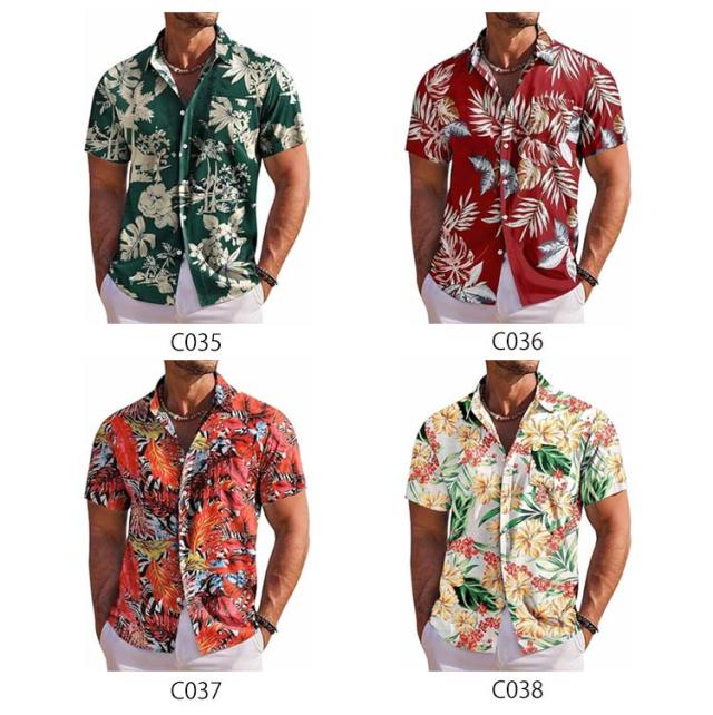 シャツ カジュアルシャツ シャツ 海・ビーチ 開襟シャツ トップス 夏コーデ ビーチシャツ 柄シャツ 半袖 総柄 半袖シャツ アロハシャツ BBQ アウトドア 旅行