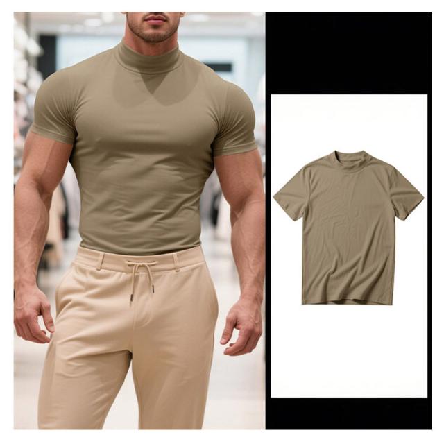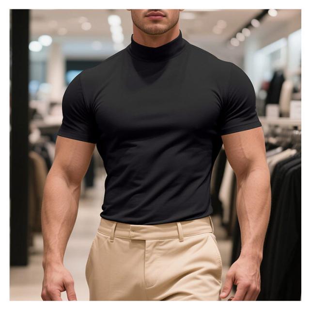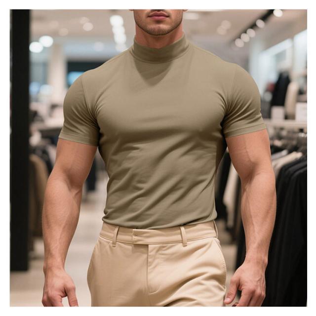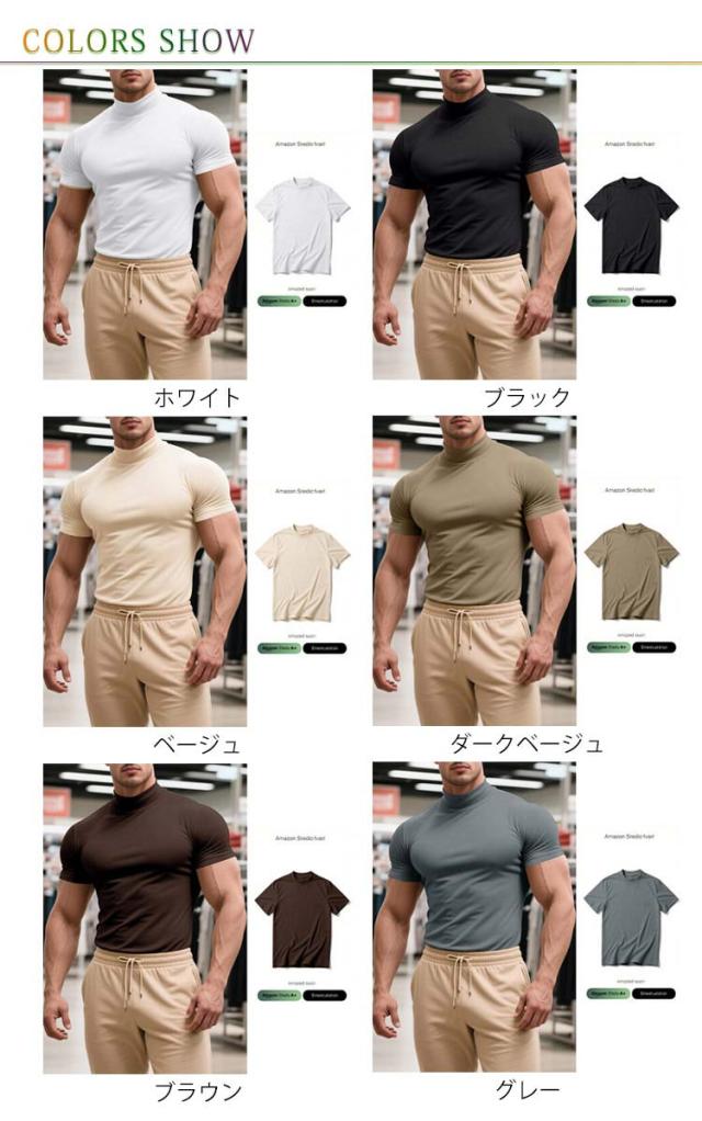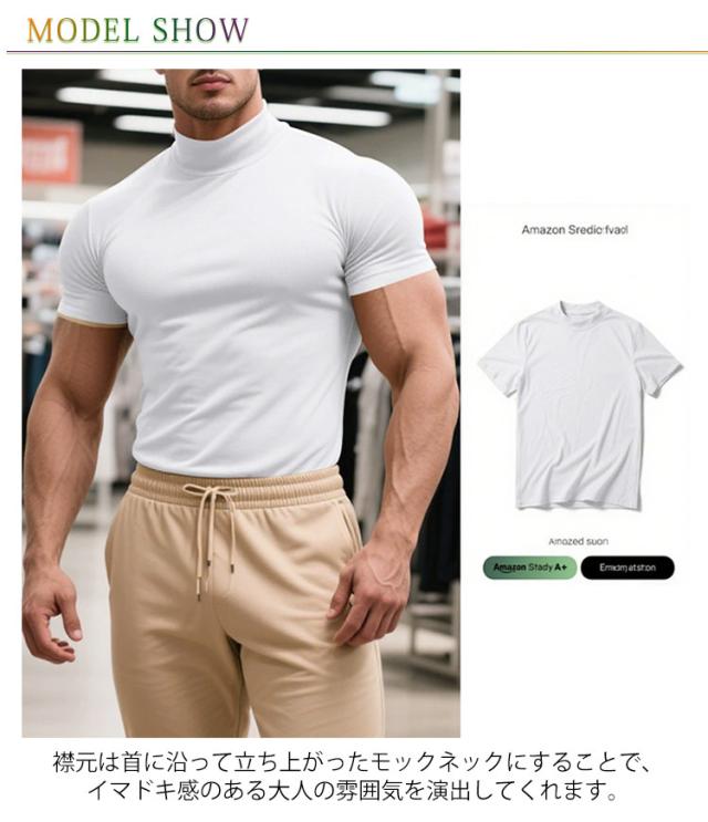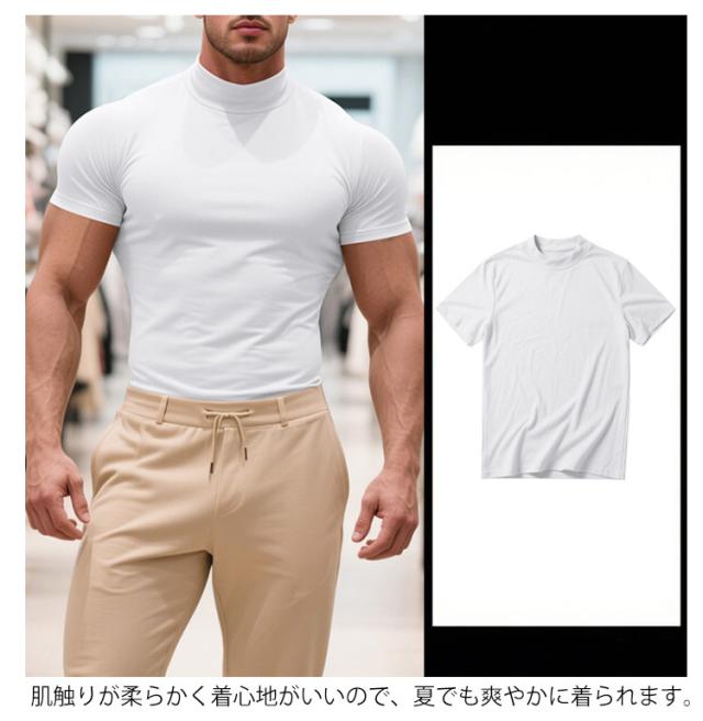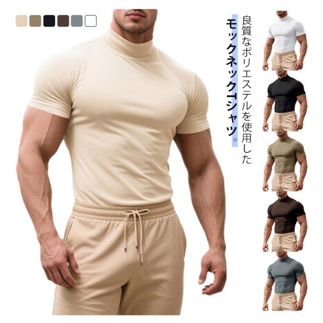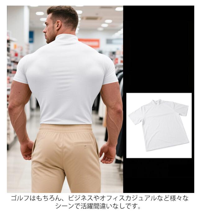 ゴルフウェア 半袖 カットソー ゴルフウェア メンズ 無地tシャツ 作業着 夏 トップス ハイネックTシャツ モックネック 在宅 ティーシャツ ストレッチ インナー ビジネス 普段着 スポーツ オフィス