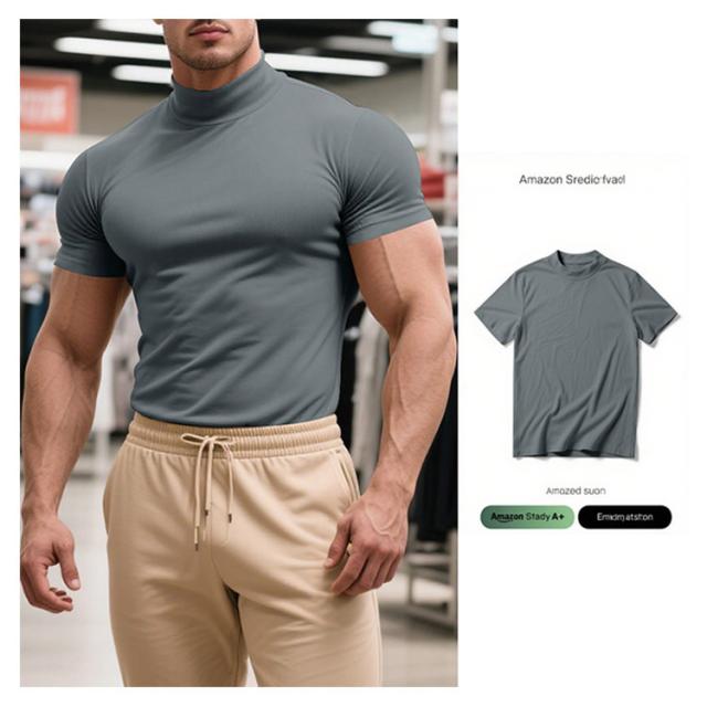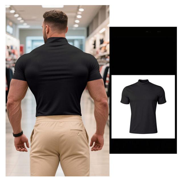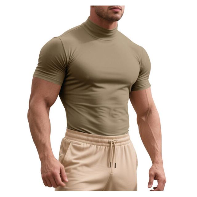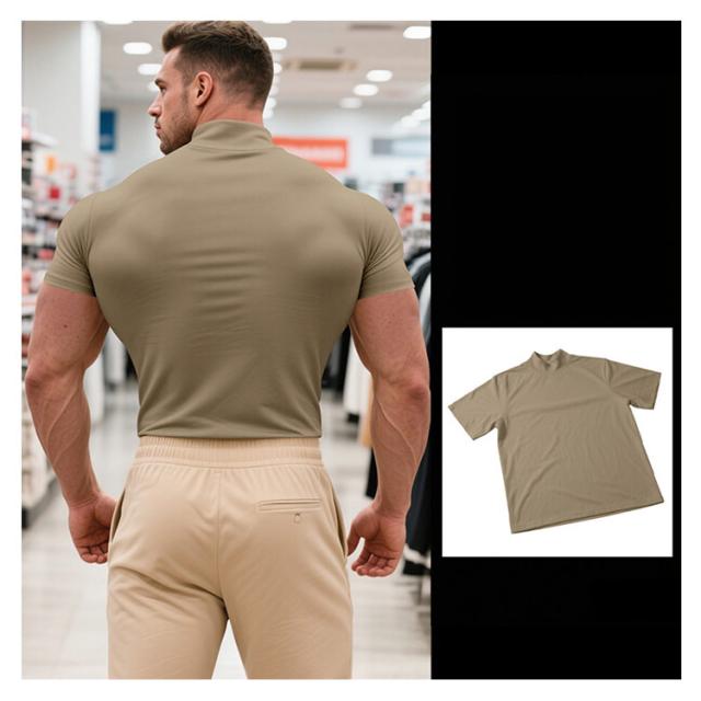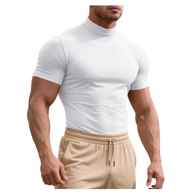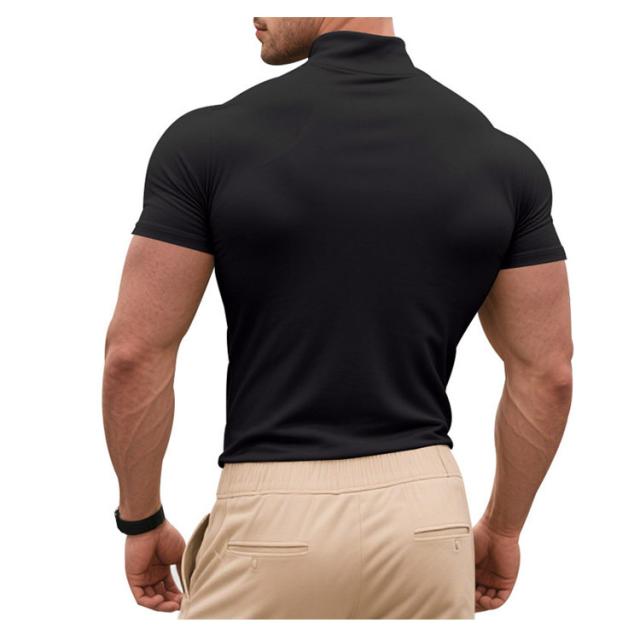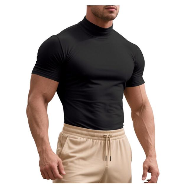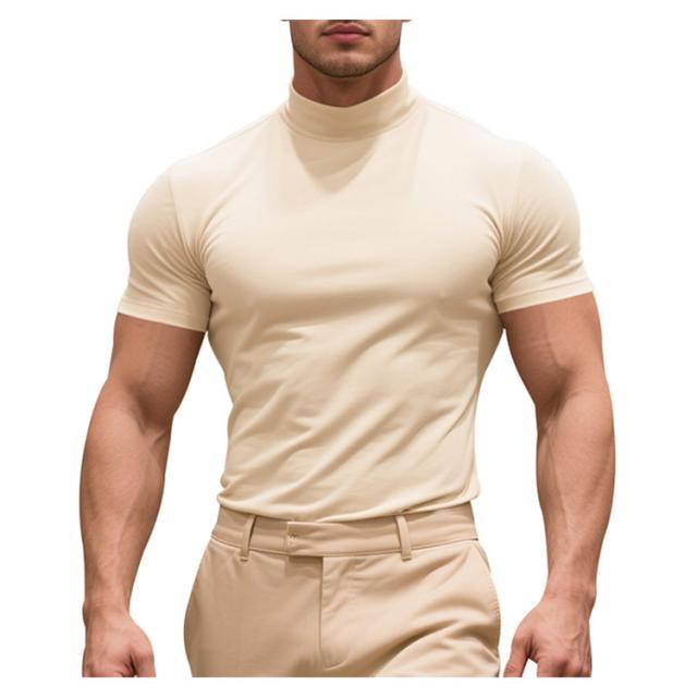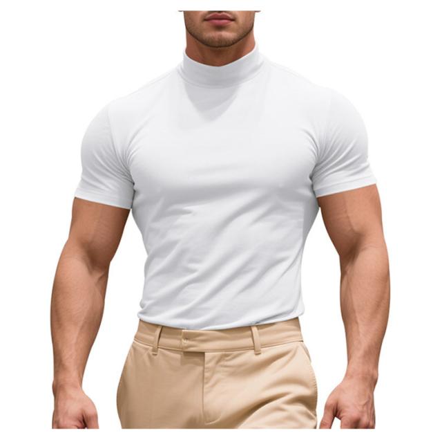 ゴルフウェア 半袖 カットソー ゴルフウェア メンズ 無地tシャツ 作業着 夏 トップス ハイネックTシャツ モックネック 在宅 ティーシャツ ストレッチ インナー ビジネス 普段着 スポーツ オフィス
